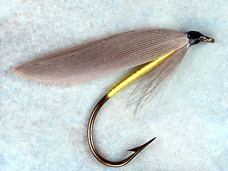 Body: Yellow floss Hackle: Gray Wing: Light slate