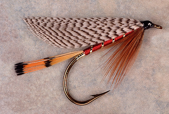 Tag: Flat gold tinsel Tail: Golden pheasant tippet Body: Dark red floss Rib: Gold tinsel Hackle: Red or light brown hackle Wing: Gray mallard