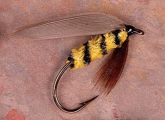 Bee Tied by Don Bastian Body: Alternate yellow and black chenille Hackle: Dark brown Wing: Dark slate This page designed and copyrighted © 2000 The Complete Sportsman
