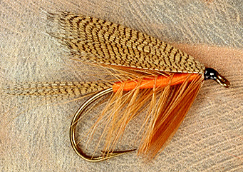 Tail: Mandarin or dyed mallard Body: Orange floss Hackle: Brown (palmered) Wing: Dyed mallard or mandarin
