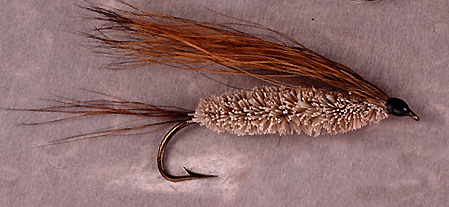 Tail: Light reddish-brown bucktail hairs of various lengths: the longest being about an inch Body: Brown deer hair spun and clipped to shape Wing: Dark brown bucktail tied in at a 40degree angle Note: Developed by Indian guides in the Canadian northwest. Source: Bates, J. (1950, 1966, 1995) Streamer Fly Tying and Fishing, p. 267; Perrault, K.E. (1984) Standard Dictionary of Fishing Flies, p.385