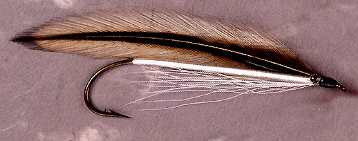 Body: White floss Throat: Sparse white bucktail Wing: Two light badger neck or saddle hackles Eyes: Clear glass eyes with dark pupil tied on each side just behind head Note: This fly can be tied as both casting and trolling streamer. Source: Stewart, D. and Leeman, B. (1982) Trolling Flies for Trout and Salmon, p. 101