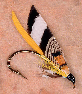Tip: Gold tinsel Tail: Yellow Body: Yellow floss silk Rib: Gold tinsel Hackle: Guinea and yellow intermixed Wing: Barred wood duck, golden pheasant tippet eye SOURCE: Bergman, Ray Trout. 1938. New York: Knopf Tied by Don Bastian. Back to Dictionary © 1999 The Complete Sportsman