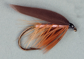 Tag: Gold tinsel Tail: Light brown Body: Pink floss Hackle: Light brown tied palmer Wing: Dark slate